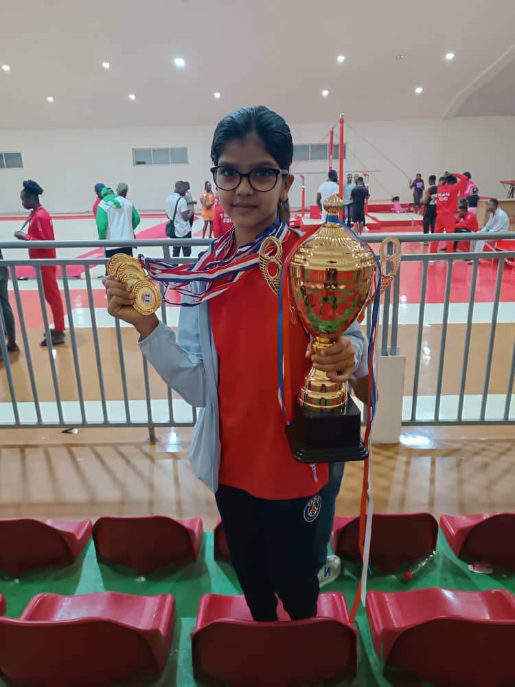 Avani, 11, started training gymnastics in 2017 at home initially. In 2018 she went to South Africa and bagged the best gymnast trophy under Level 3 within less than one year of her starting training.