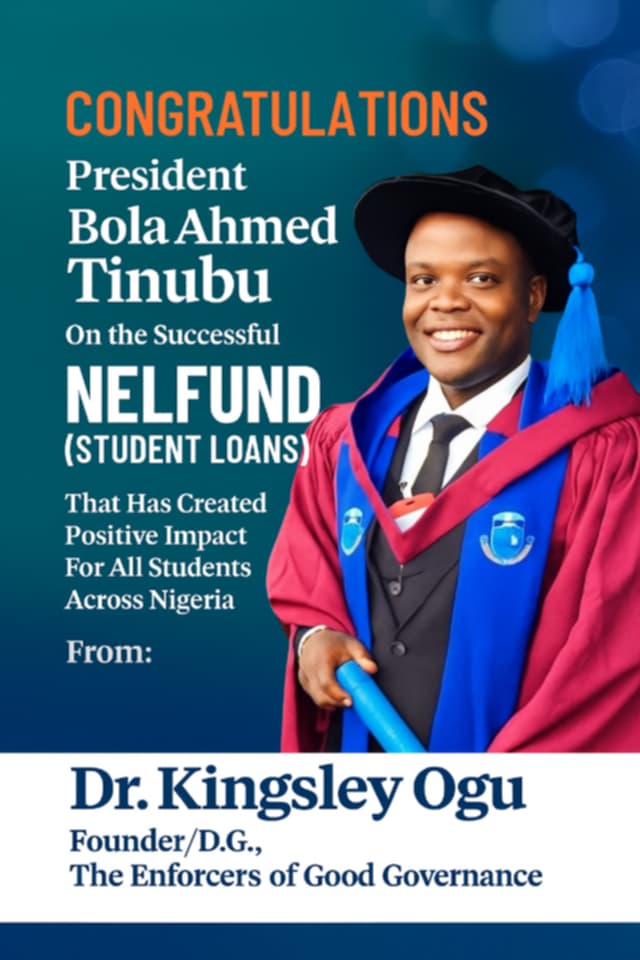 “On behalf of myself and the entire membership of Enforcers of Good Governance, I congratulate President Tinubu as Nigeria marks 65 years of independence,” Dr. Kingsley stated. “We celebrate not only the nation but the bold steps being taken to secure a brighter future for all Nigerians.”