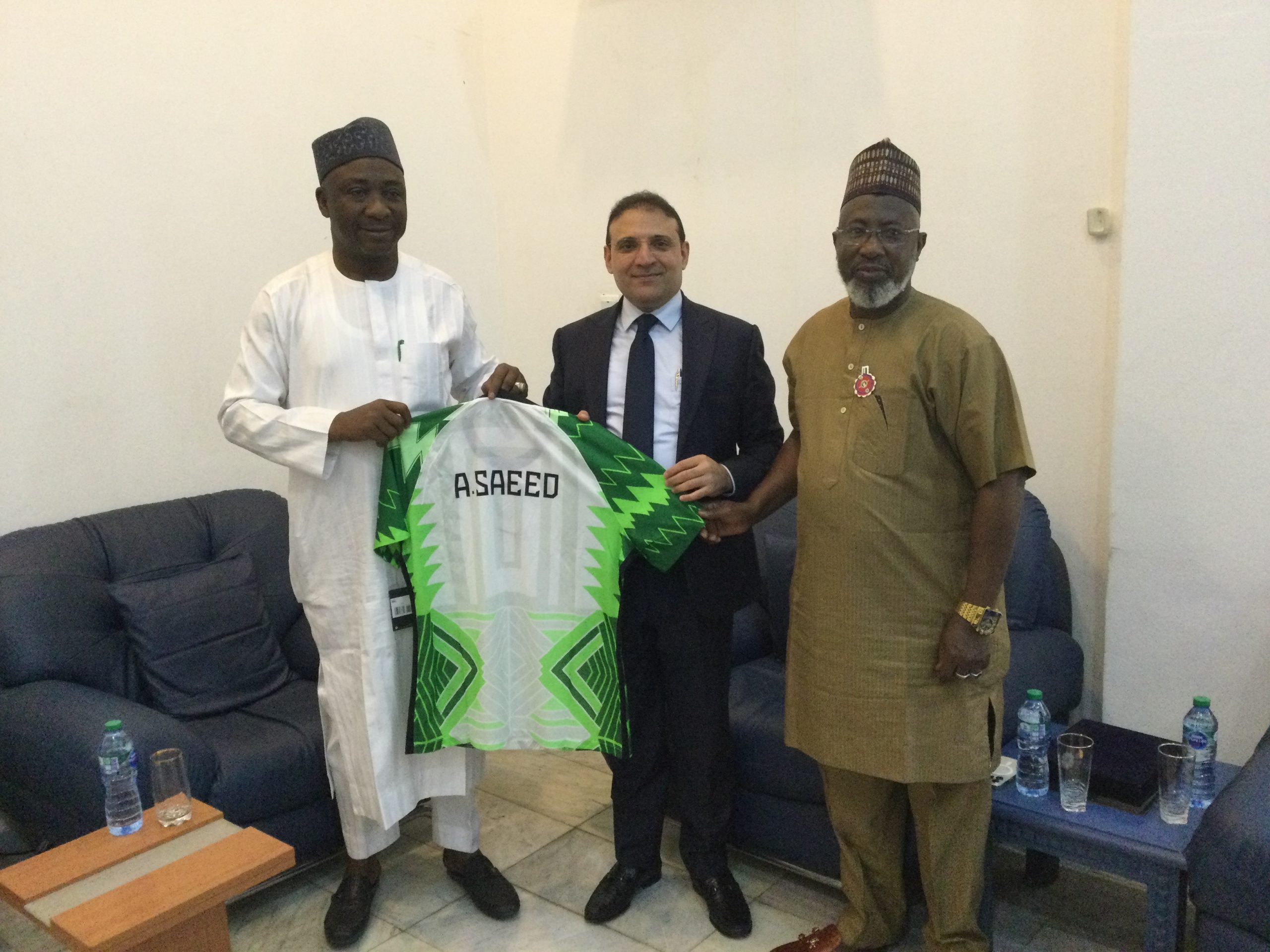 Also on the courtesy visit were the NFF General Secretary, Dr. Mohammed Sanusi; Director of Communications, Ademola Olajire; Director of Competitions, Ruth David; Chief Protocol Officer, Emmanuel Ayanbunmi and; special assistant to NFF President, Abubakar Barde. Mr. Ibrahim Al-Badri (Consul/Administrative Manager) and Mrs Sakina Al-Khalifa (Secretary to Head of Mission) were with HE Saeed.
