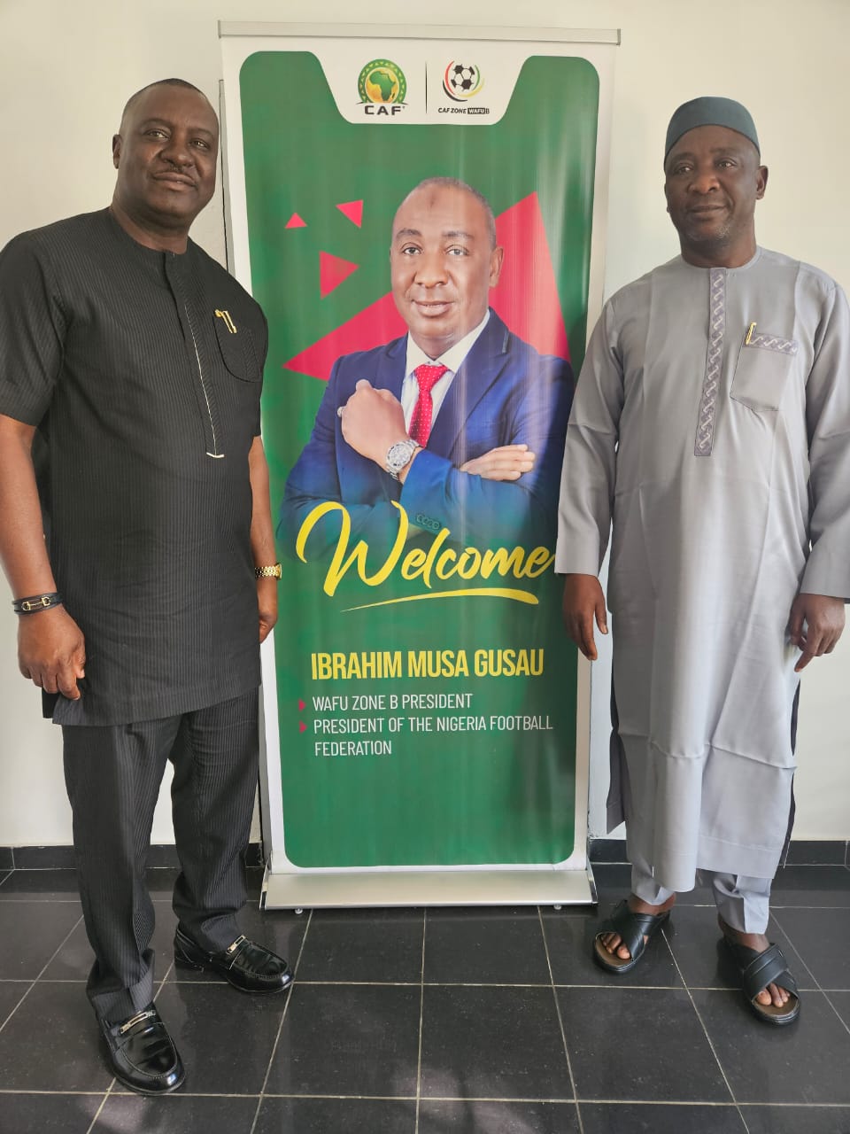 Nigeria’s diplomat to Côte d’Ivoire, a Former protocol officer of Nigeria Football Federation NFF and Member of Nigeria premier league Assessor, Robert Akpenpuum on Tuesday paid a courtesy visit to the President of the Nigeria Football Federation (NFF) and newly elected President of WAFU Zone B, Alhaji Ibrahim Musa Gusau, at his office in Abidjan.
