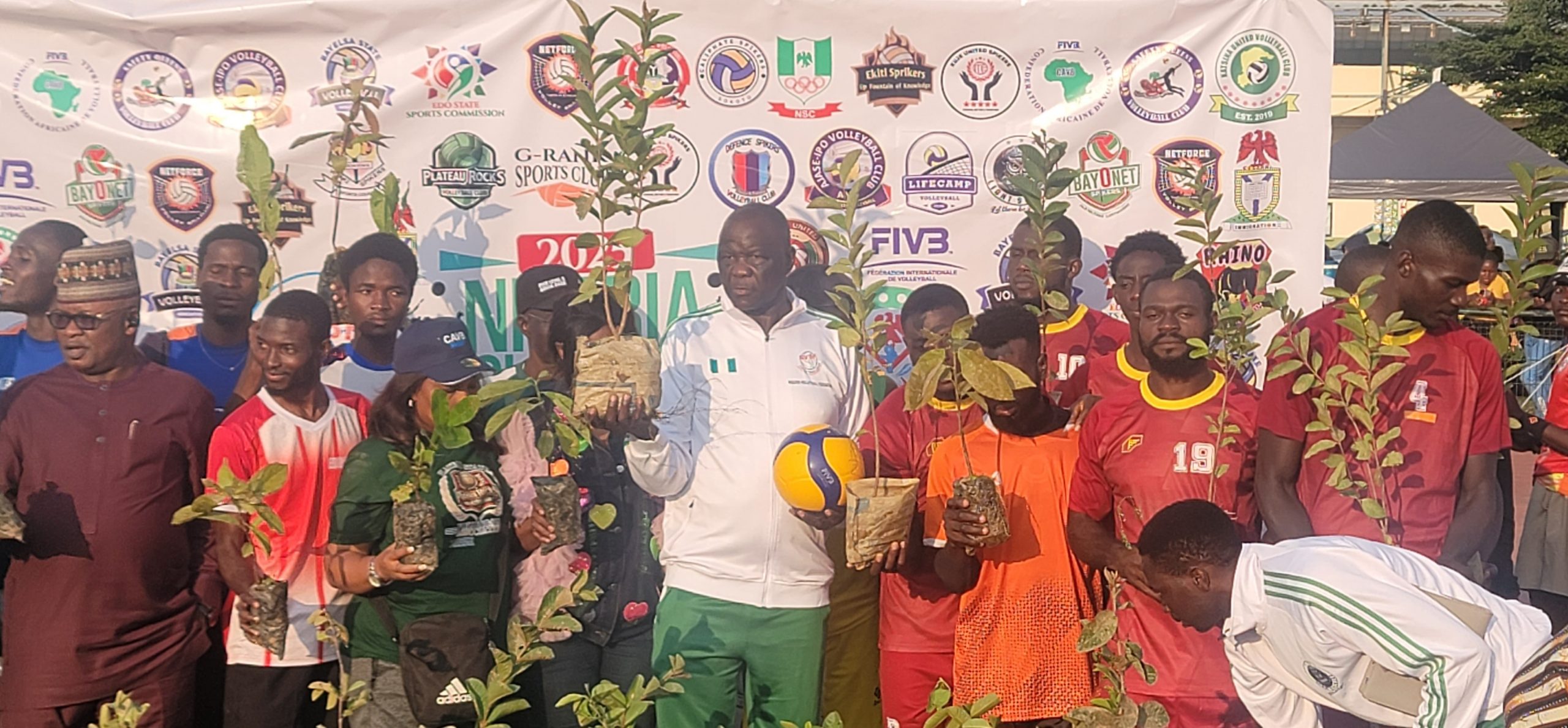 In a bold step toward environmental sustainability, the Nigeria Volleyball Federation (NVBF), under the leadership of its President, Engineer Musa Nimrod, has donated tree saplings to all 35 male and female teams that participated in the recently concluded Chief of Defence Staff National Volleyball League Division 1 and 2 – Phase 1.